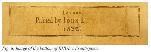 One further curiosity about this edition is the erroneous assignment of its printer. The title page ascribes it to "John I" in 1622 (Fig. 9.)—two mistakes in a single breath. First, the Second Folio was published in 1632 (although some of its remainder issues were released as late as 1641 and after), not 1622. Second, it was published by Thomas Cotes, not John I.