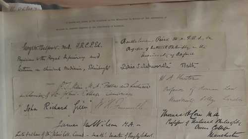 Collection of Autograph Signatures in Favour of Admitting Women to Medical Degrees. (1877). BC RF/147, Archives and Special Collections, Royal Holloway, University of London.