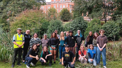 The gardening team work with student volunteers to complete conservational works in and around the ponds. Together, they manage aquatic weeds, improve water flow and improve habitat continuity, while also preparing areas for new planting schemes.