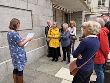 In Bedford Square, after a welcome coffee, we enjoyed a short talk on the Bedford College archive, and we met the archivist Dr Alexander Sessa who will be working on the archive over the next two years. We learned that the archive has over 2000 boxes and covers the years from 1849-1985. The archive includes details of Bedford’s charters, deeds, statutes, minutes of meetings, the Reid Trust, academic departments, the registry, records of the Principal and Secretary’s department, and many photographs. We also learned that Bedford was at the forefront of learning opportunities for women not only in the arts but also in medicine and the sciences.