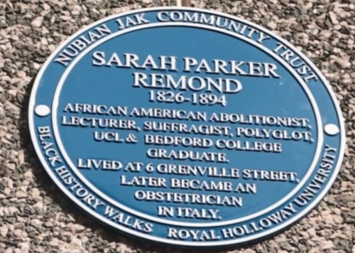 Sarah Parker Remond has been honoured with a Nubian Jak blue plaque, sponsored by Black History Walks and Royal Holloway. The plaque was unveiled on March 25 at Grenville Street, London. If you missed the unveiling, we encourage you to visit the plaque and watch our video here: youtube.com/watch?v=9yMpD7bf2A0