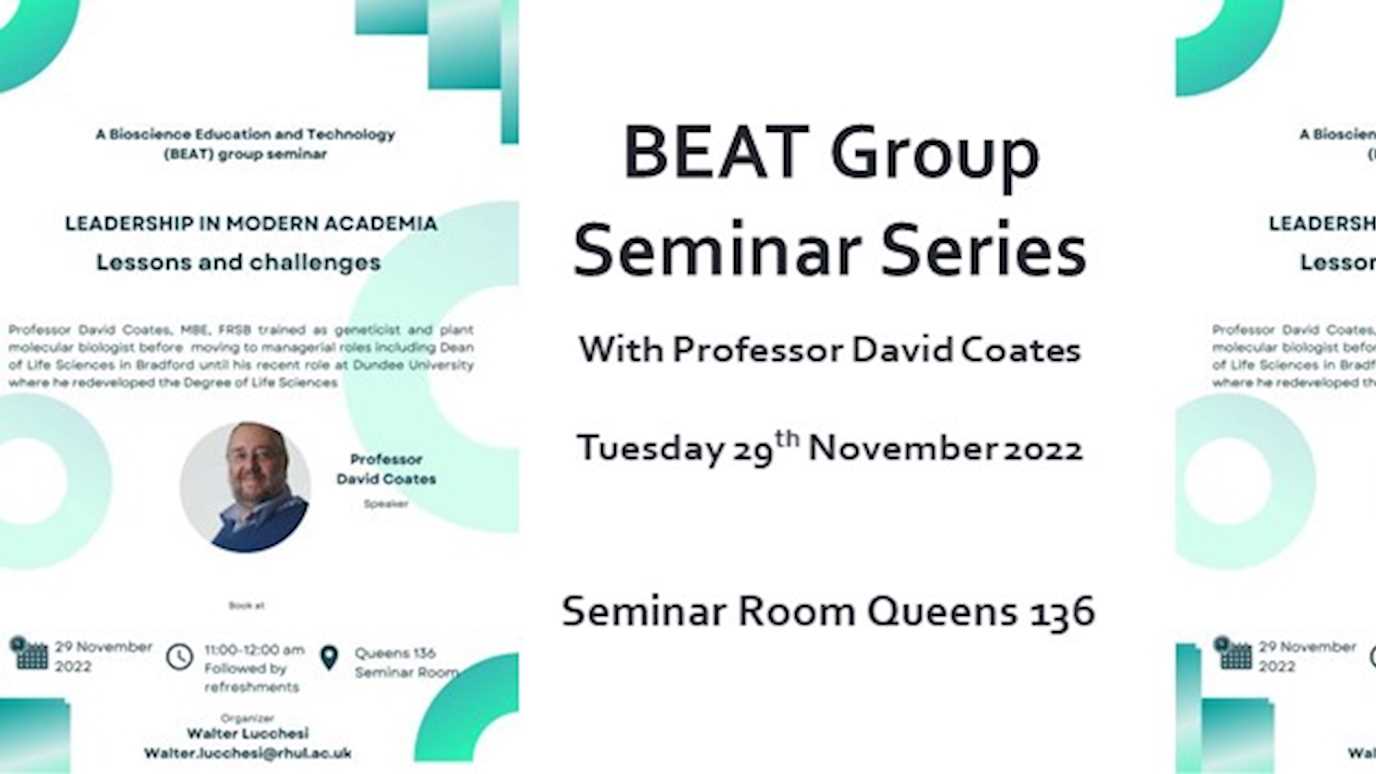 We are really pleased to announce the first BEAT Seminar event, which will take place on the 29th November 2022, Queens 136 Seminar room, 11:00 am. Please save time on your diary.
