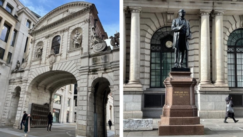 The small group of students that managed to make it to the last departing tour were treated to an interesting history lesson relating to the location of major British banks within the walls of the old city of London. Standing in a small garden outside the headquarters of the Lloyds bank, they learned that many banks had departed the City of London in favour of establishing headquarters in Canary Wharf, where attractive deals were on offer. The loss of these large British bank headquarters from the City has pained the Corporation of the City of London and they continue to endeavour to attract these banks back to the square mile, which the pandemic may have inadvertently helped.