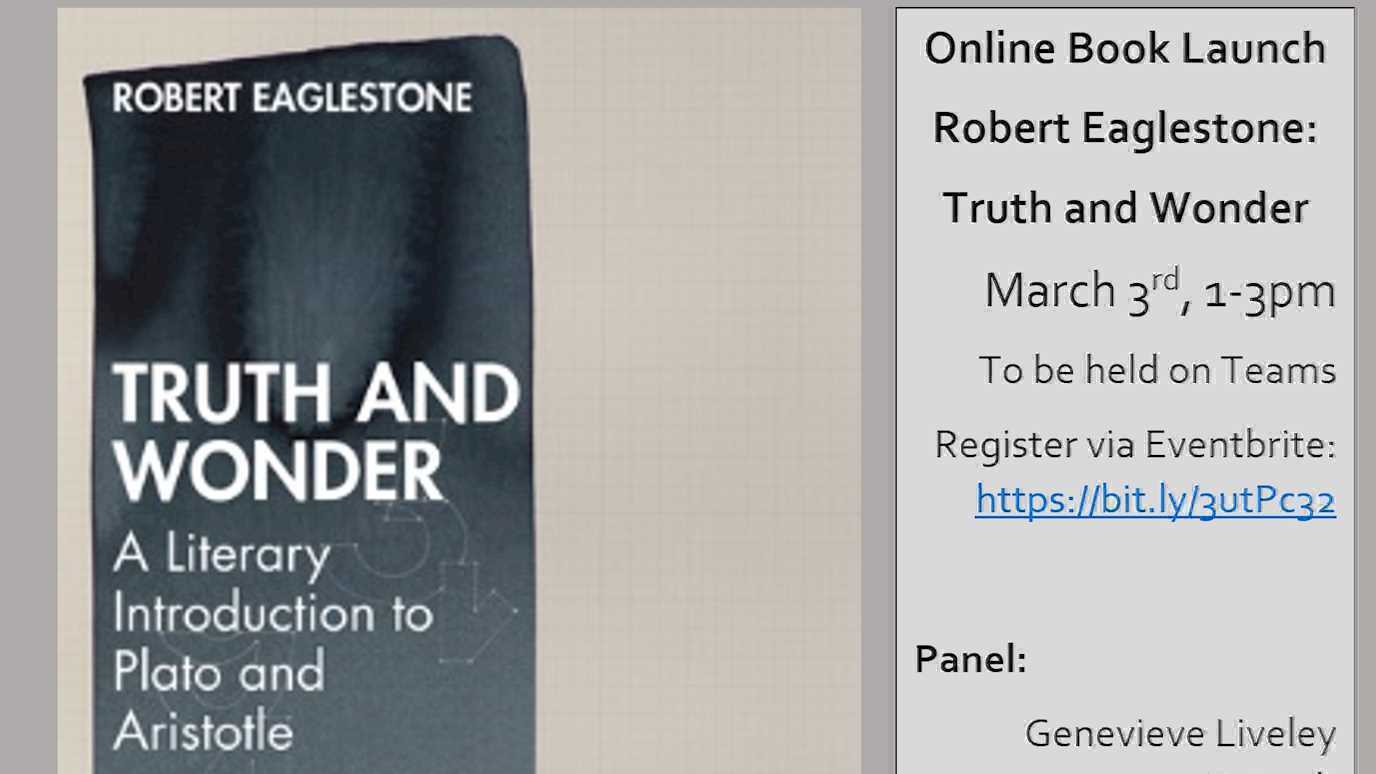 We very much hope you will join us to celebrate this exciting new book. If you would like to attend the launch, please register through the ‘Book Tickets’ feature above or through the following link: https://www.eventbrite.co.uk/e/book-launch-truth-and-wonder-robert-eaglestone-tickets-263736090747; links to the Teams event will be sent out on the day.