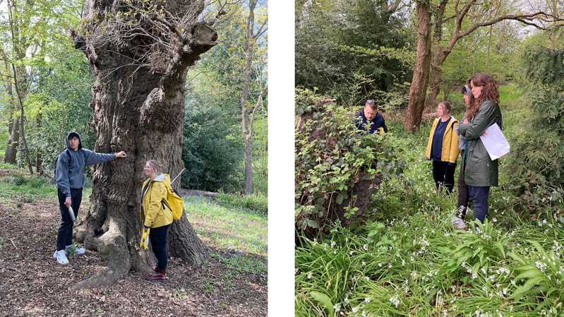 R: Looking for tree rot and fungus. Jonathan Howe (Head Gardener), Jessica Lingard-Nutt, Brandon Thompson and Rebecca McCutcheon.