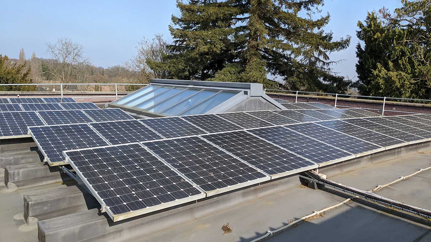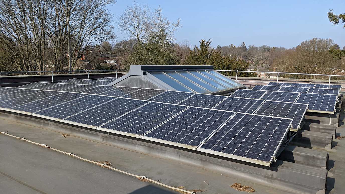 To help reduce the department’s carbon footprint, a 12 kW Solar PV array was installed during construction of the Caryl Churchill Theatre. The panels generate around 7680 kWh or energy each year, reducing our demand on conventional grid power. On a sunny day, the panels supply virtually all the power needed in the building, while exporting excess power to the grid. The green power we generate on site, reduces our carbon footprint by about 1.8 Tonnes each year.
