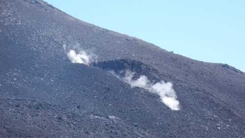 From the favourable point of observation on the western rim of the 1997 eruption crater it was possible to see pulses of steam released by the New South-East Crater, the still steaming lavas of the December 2018 eruption, and the small lapilli cone of the 31st May to 1st June 2019 explosive activity. The surface temperature of the lava field produced by the most recent eruption was still > 300°C, even though two weeks had passed at the moment when the hike took place.