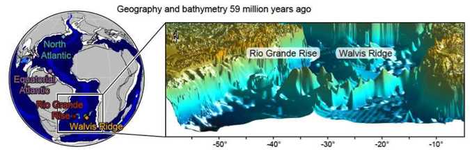 As the Atlantic Ocean continued to open, the oceanic crust cooled and subsided. Basins became deeper and wider, and submarine plateaus and ridges sank, along with the crust. At some point, deep water from the Southern Ocean was able to pass north across the Walvis Ridge and fill the deeper parts of the Atlantic basins. “This study is the first to establish how and when a deep-water connection formed” says Sietske Batenburg, first author of the study. “At 59 million years ago, the Atlantic Ocean truly became part of the global thermohaline circulation, the flow that connects four of the five main oceans together in a large global cycle”.