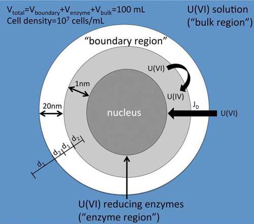 The uranium reduction is occurring on the bacterial cells. This model suggests that the balance between uranium removal rate and the chemical communication between dissolved uranium and bacterial enzyme will control uranium isotope ratios (Basu et al., 2020, ES&T).