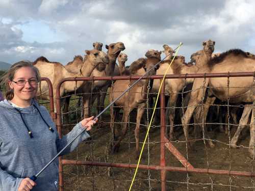 Collecting air samples for methane isotopic measurement close to camels at ILRI’s Kapiti research station in Kenya