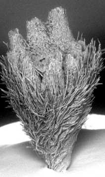 Scanning Electron micrograph of a Charcoalified ovule (1.5mm long) from the Carboniferous of Scotland (Scott et al., 2019 Int. J. Plant Sciences). |