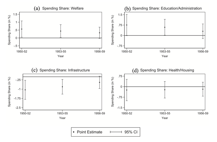 The paper by Arnaud Chevalier shows that cities with high inflows of forced migrants increased spending on welfare and education, decreased spending on infrastructure, raised local taxes, and incurred more debt.