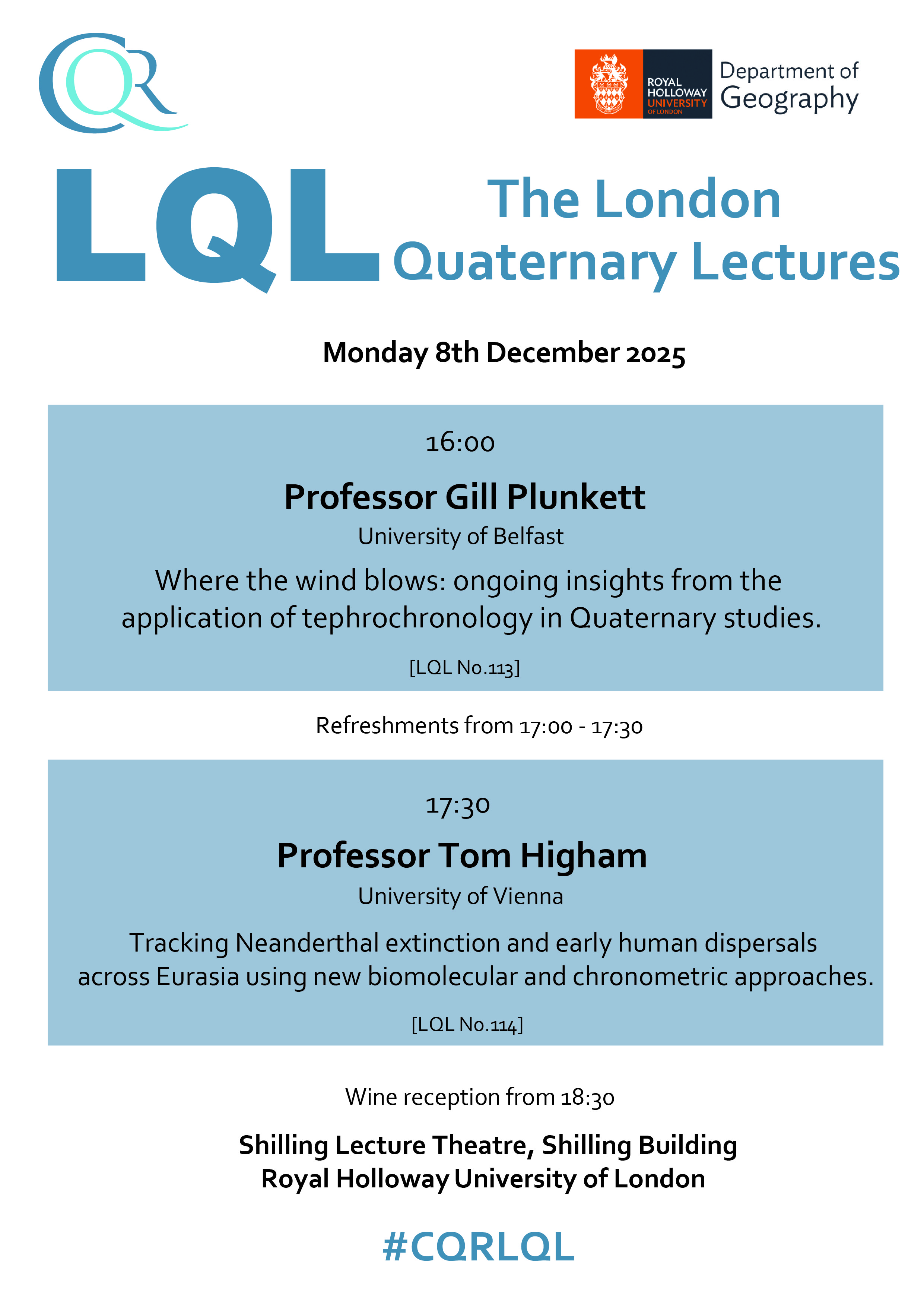 The London Quaternary Lectures are a longstanding annual lecture series run by the Centre for Quaternary Research.