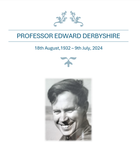 We have received the sad news that Professor Edward Derbyshire passed away and it was announced on 9th July, 2024. With deepest condolences to his family.