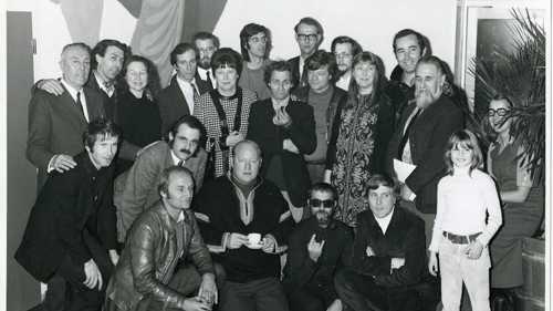 Some of the artists who participated in the exhibition Klankteksten ? Konkrete Poëzie Visuele Teksten. Sound texts ? Concrete Poetry Visual Texts. Akustische Texte ? Konkrete Poesie Visuelle Texte curated by Liesbeth Crommelin. Stedelijk Museum, Amsterdam. November 1970. Collection M HKA, Antwerp