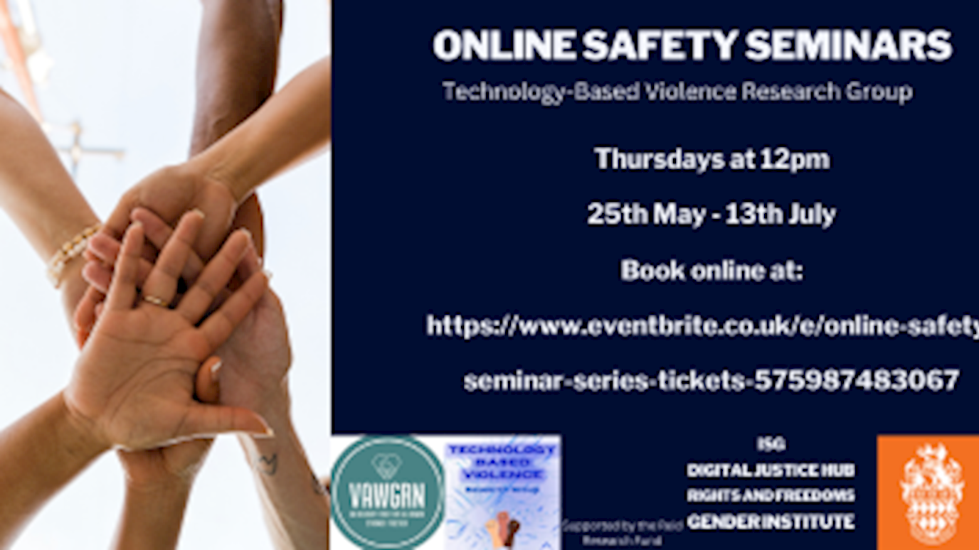 Aislinn O’Connell, Rachel Maguire, and Lizzie Coles-Kemp are organising a summer seminar series on Online Safety and Gender Based Violence. Running every Thursday lunchtime from 25th May – 13th July, these seminars are an opportunity to engage with and explore some of the diverse research going on in this developing area. Lunch is provided for in-person attendees, but please do register on Eventbrite for attendance and catering purposes. Online tickets are also available. This seminar series is supported by The Gender Institute, the Digital Justice Hub, the Rights and Freedoms Group, and the Technology-Based Violence Research Group.