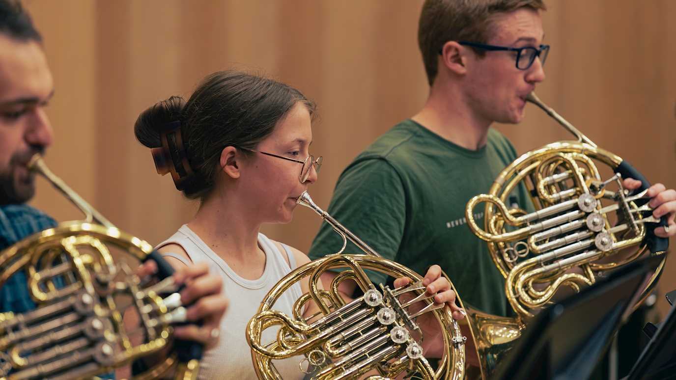 Led by internationally-acclaimed conductor Rebecca Miller, the Royal Holloway Symphony Orchestra meets weekly, giving three concerts per year in the Windsor Auditorium. The orchestra endeavours to create a lively, challenging, and social basis for orchestral life at Royal Holloway and comprises students from across the university. They also participate in side-by-side programmes with professional musicians, and through our unique partnership with the Chiltern Music Academy. For 2020-21, orchestras at Royal Holloway launched a new social action project called Re-Orchestrating Society, where members of orchestras at Royal Holloway work together in small teams to develop a project based around orchestras that aims to benefit society.