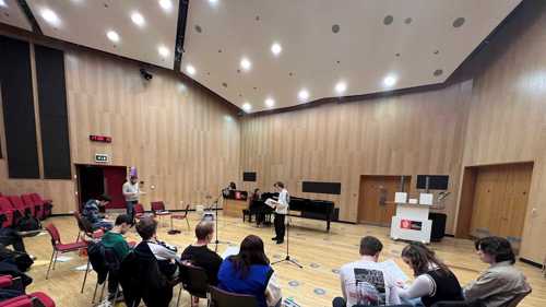 In early March 2023, we welcomed five young composers to our Egham campus as winners of the second year of the Royal Holloway Composition Competition. We received entries from across the world, with a consistently high standard. Our composition staff provided feedback for every entry, but we invited just five to participate in our Workshop Event.