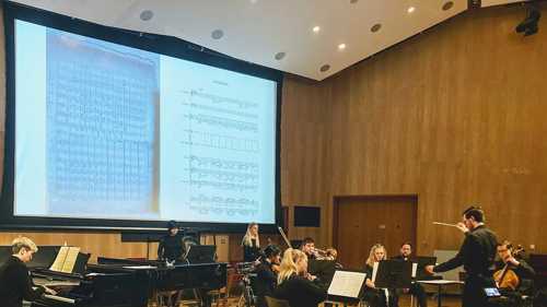 A student ensemble, featuring orchestral scholars and conducted by MMus student Matthew Elderton-Lewis, brought to life the stand-alone music - mostly composed by mountaineer and amateur musician T. Howard Somervell - while Brown attempted to recreate the way in which, in 1922-23, a small orchestra accompanied the masked ritual dance section of the film by imitating ‘Cham music on Western musical instruments. None of this music has been heard since 1923.