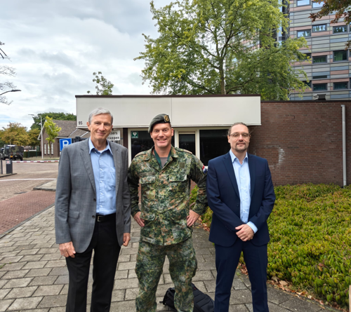 Left to right: Dr John Tull, Lieutenant-Colonel Dr Martijn van der Vorm, and Prof Tom Dyson at the Netherlands Defence Academy, Breda