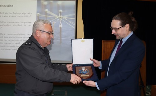 The event was attended by around forty officers ranging from cadets writing their dissertations on the Lessons-Learned Process at the Military Academy, through to senior Generals. It was followed by the presentation of a commemorative plaque to Prof Dyson and Dr Tull to recognise the productive completion of the four-year knowledge generation partnership.